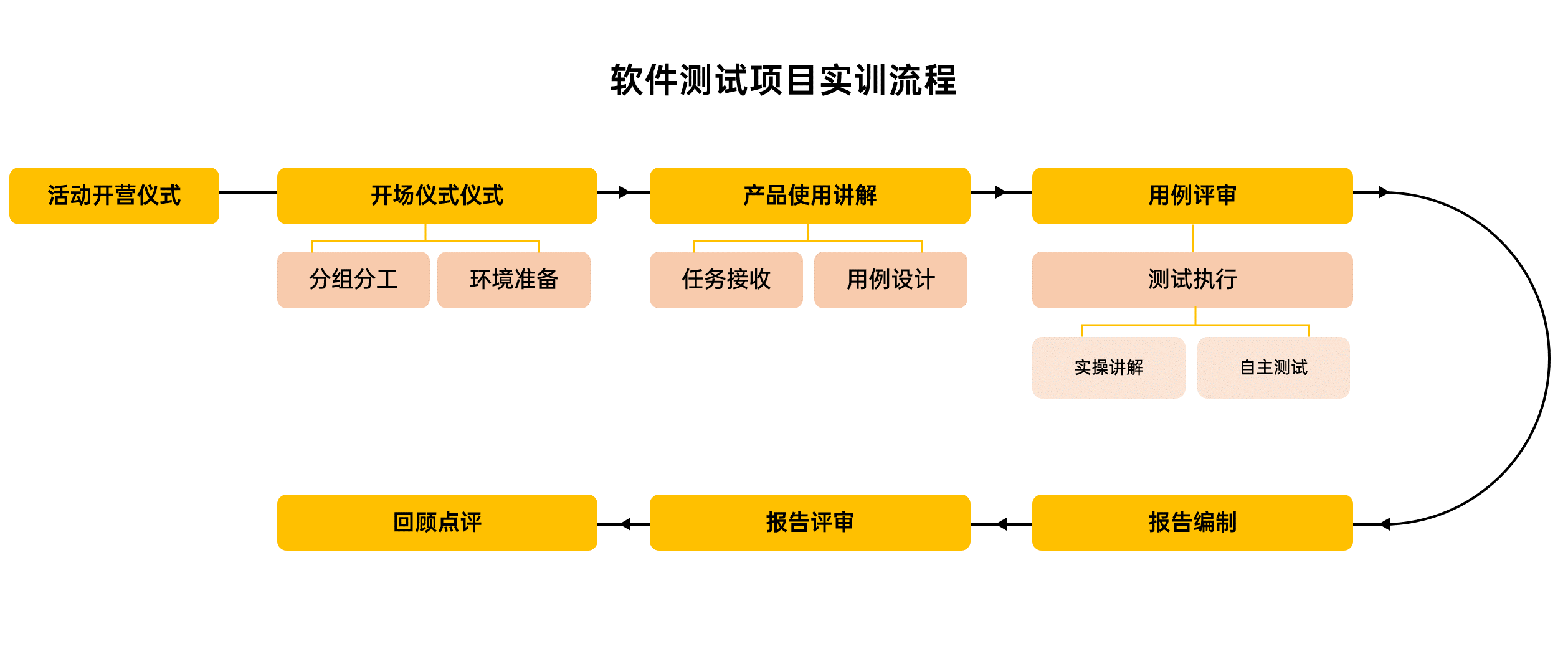 在紧凑的项目周期内,学生完整经历了企业测试项目的四个关键阶段: